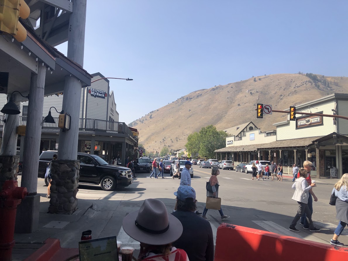 Once everyone had gathered their wits, we got in Lexie and headed over Teton Pass and down into Jackson, Wyoming, a mere 24 miles away from camp. We were ready for lunch, so we made our first stop at Roadhouse Brewing. We had a nice lunch and a cold beer and did some pretty good “people watching.” We had a table right on the sidewalk and downtown Jackson was bustling! What a fun little town! After walking around for about an hour in Jackson, we decided it was time to pay a visit to Grand Teton National Park.