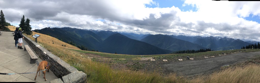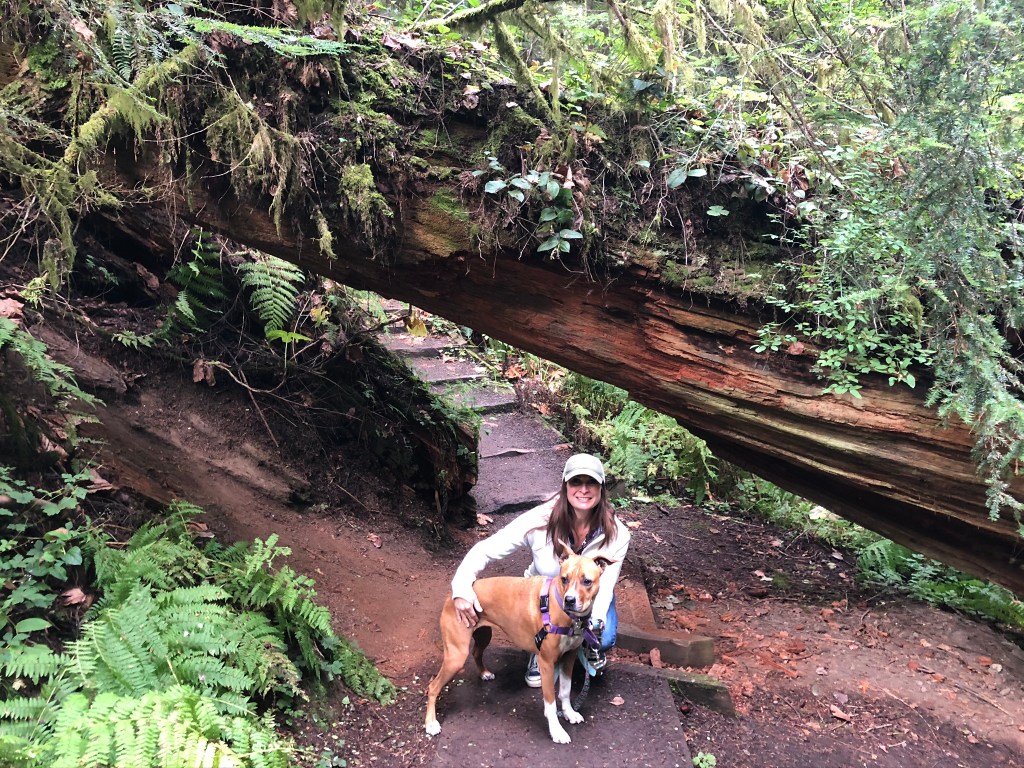 We had ventured beyond Seattle, to the farthest reaches of the Pacific Northwest, for one reason – Olympic National Park! We started our tour with a short, but very scenic, hike near the Park Visitor Center close to Port Angeles. We had done some research, and this was one of only a handful of dog-friendly hikes in the park.
