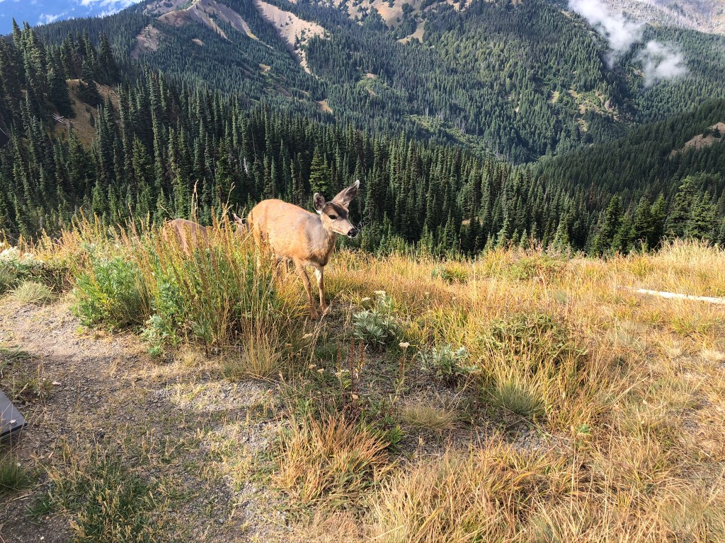 After our hike, we drove 18 miles to the Hurricane Ridge Visitor Center, which has some of the most incredible views I’ve ever seen! The Olympic Mountains are worthy of the drive! It was not the clearest of days, but I’m pretty sure we could see Mt. Olympus off in the distance. We did another nice little hike that included some really nice views of Vancouver, and a few not so wild deer-elk.
