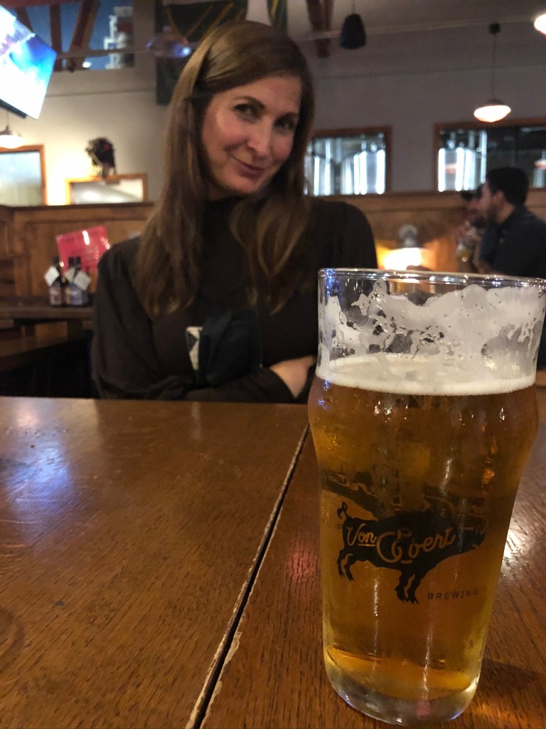 We made a lunch stop somewhere along the coast, and eventually crossed the Columbia River, into Oregon. We made it to Portland around 7:00 PM, and we knew that we had no time to waste, as this was a “one-nighter” at a campground that we’d booked very last-minute. We managed to find parking for Lexie and Fleetwood Mac in downtown Portland, and we got ourselves to the nearest brewery, which happened to be Von Eberts! We pulled the old “service dog” trick we’d learned about back in Missoula since Lexie was parked a few blocks away. The staff at Von Eberts were very good sports about it, and we enjoyed a beer along with a few burgers (mine was a black bean burger) and had a nice time!