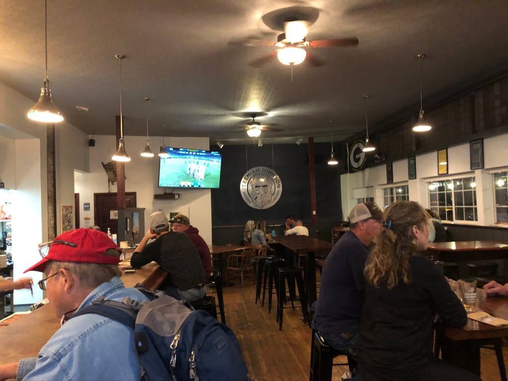 We made one more beer stop at a place called Trails End. From the outside, we weren’t impressed. But once again, another lesson in “don’t judge a book by its cover.” The inside was well appointed in natural wood and it had an outdoorsy theme that we sure appreciated. After one beer, we headed back to camp to get some rest. Our destination for the next day was West Glacier, Montana!