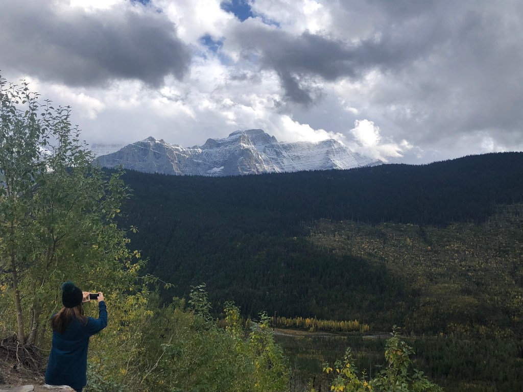 We reached the end of the road, so to speak, as the Blackfoot Indian tribe had closed the road where it enters the reservation. On our way back, as we drove back up Logan Pass, it started snowing. Not just a little bit, a lot of snow was falling! Turns out that shortly after we’d crossed Logan’s Pass on our way out, the road had been closed as the storm was moving in. We managed to make it back across the Pass, but I was glad Lexie’s 4-wheel drive was doing its job!